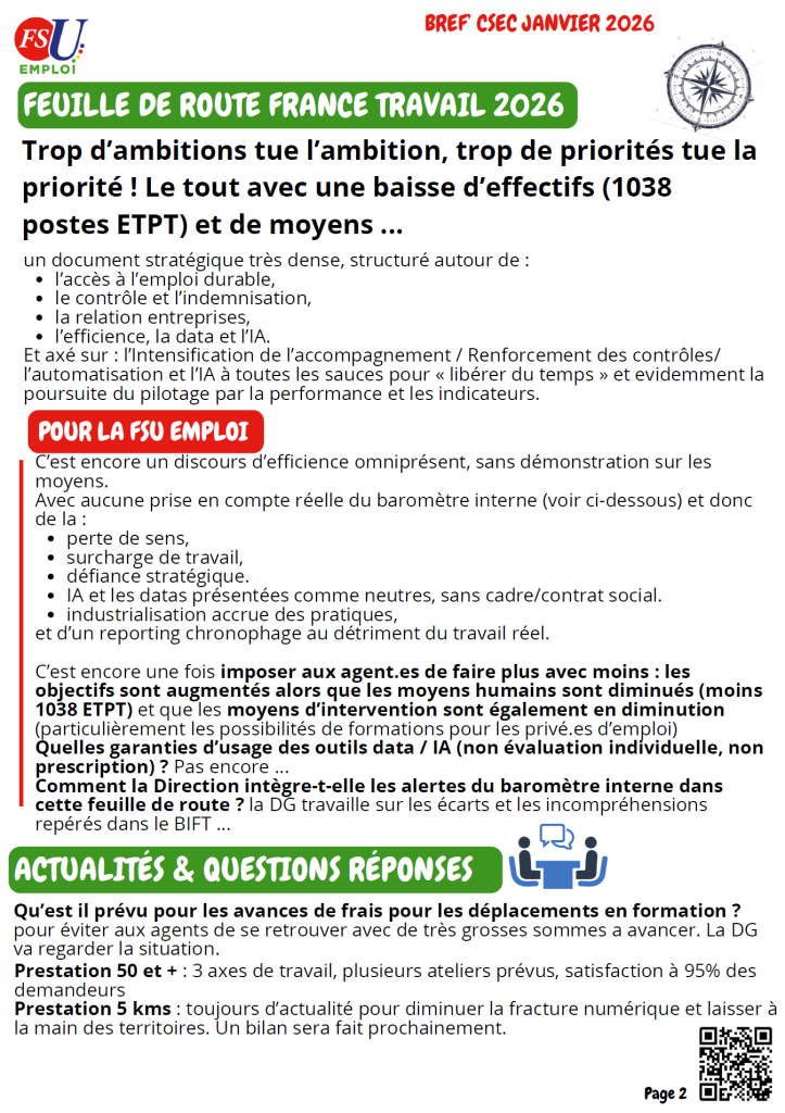 Bref'CSEC BIFT, CLASSIF PUBLIC, FEUILLE DE ROUTE, FRAIS, IA, IDEMNISATION, MAPI, OSIRHIS FSU Emploi HdF 2 février 2026