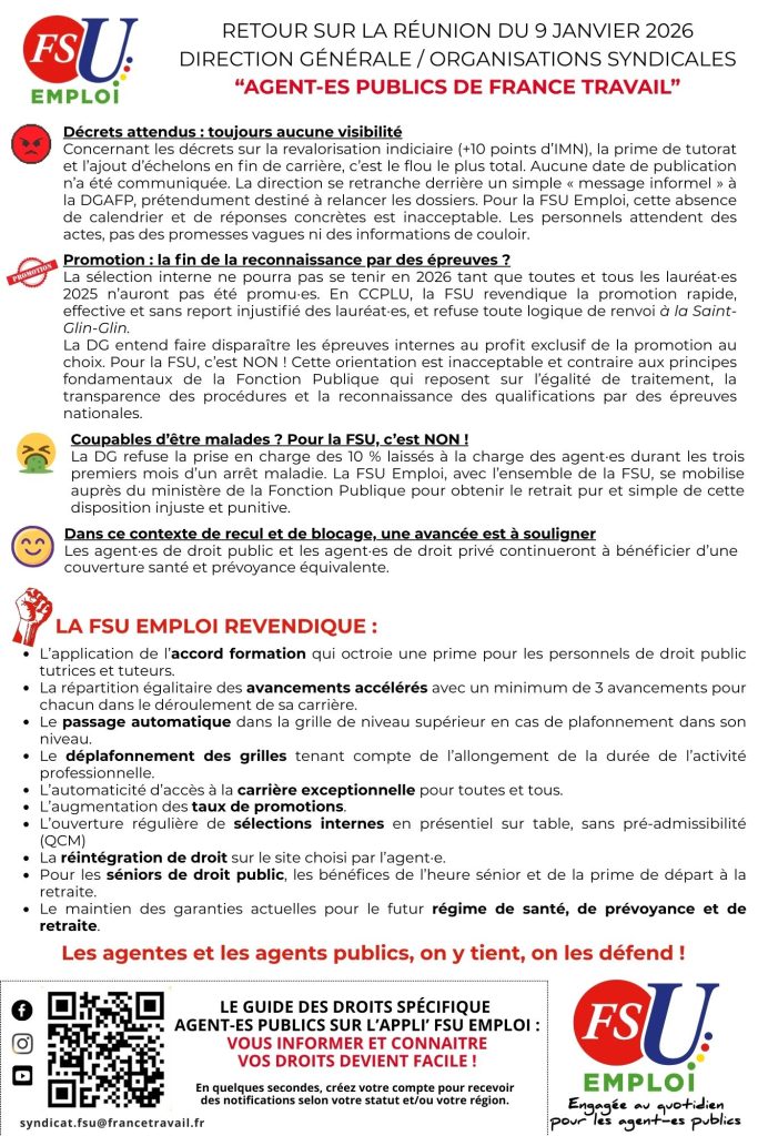 Communication ACCORD FORMATION, arret maladie, DECRETS, GRILLE INDICIAIRE, promotion FSU Emploi HdF 20 janvier 2026
