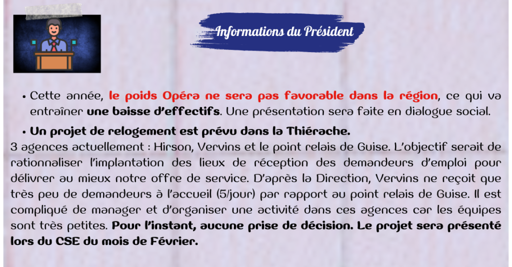 Informations du président – Quoi de neuf au CSE du 29 Janvier 2026