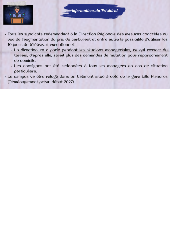 Quoi de neuf au CSE ? CAMPUS, PENURIE CARBURANT, TELETRAVAIL EXCEPTIONNEL FSU Emploi HdF 30 avril 2026 Informations du Président – Quoi de neuf au CSE du 30 Avril 2026