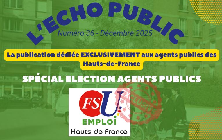 Communication ECHO PUBLIC FSU Emploi HdF 16 décembre 2025 L’Echo Public n°36 – Décembre 2025 Pour retrouver l’intégralité de l’Echo Public, cliquez sur l’image 🙂