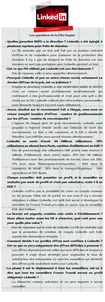 Quoi de neuf au CSE ? linkedin FSU Emploi HdF 24 octobre 2025 LinkedIn – Quoi de neuf au CSE du 23 Octobre 2025
