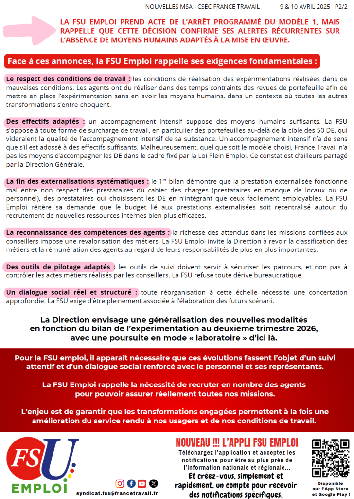 Actualité à France Travail EXPERIMENTATION, MSA FSU Emploi HdF 14 avril 2025 Nouvelles MSA : modalités de suivi et d’accompagnement