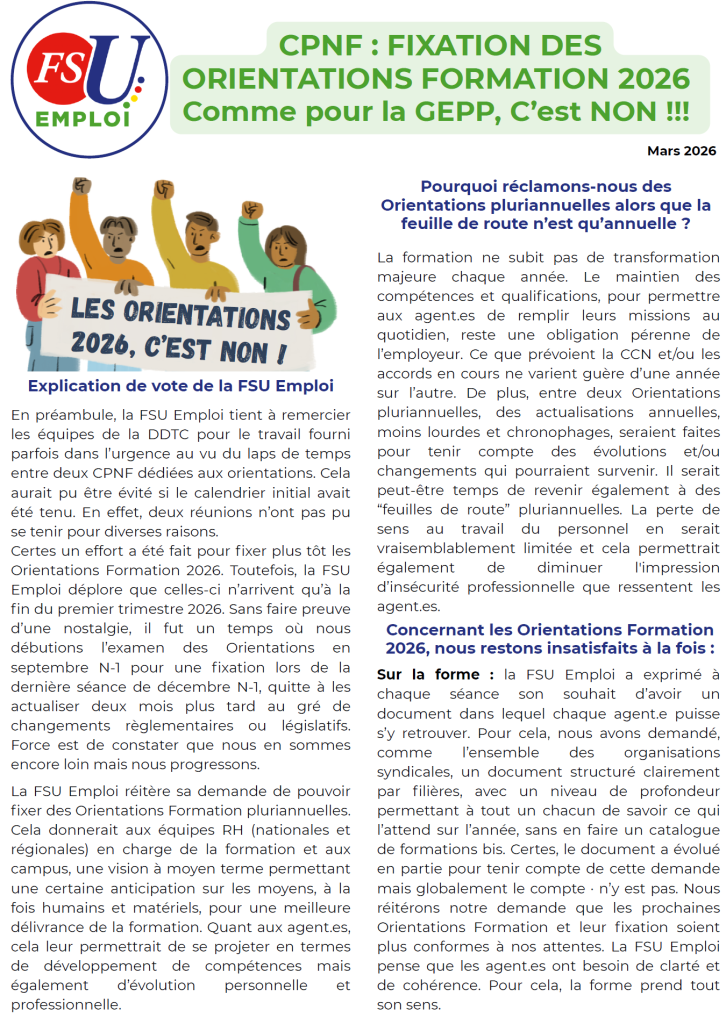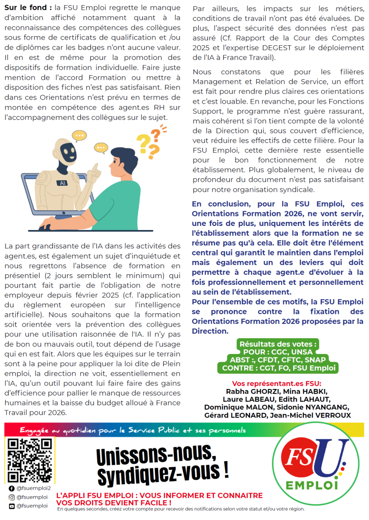 Actualité à France Travail CPNF, ORIENTATION FORMATION FSU Emploi HdF 13 avril 2026