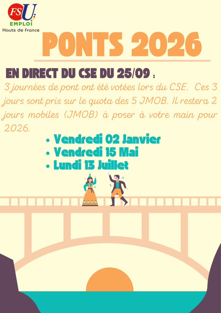 Quoi de neuf au CSE ? PONT FSU Emploi HdF 25 septembre 2025 Ponts 2026 – Quoi de neuf au CSE du 25 Septembre 2025