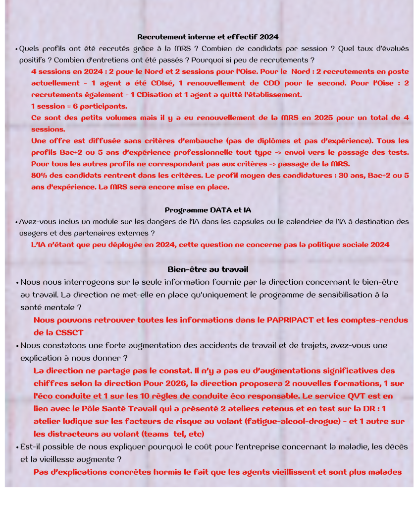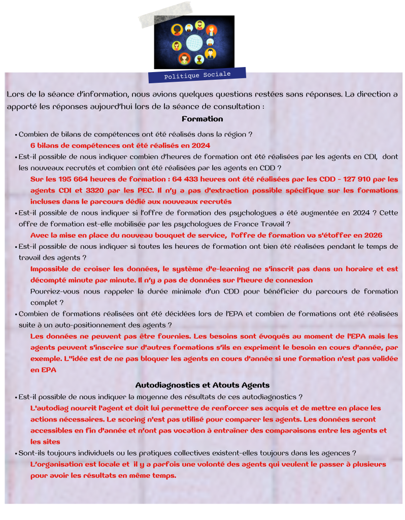 Retrouvez les questions de la FSU Emploi et les réponses de la Direction Régionale sur la politique sociale 2024