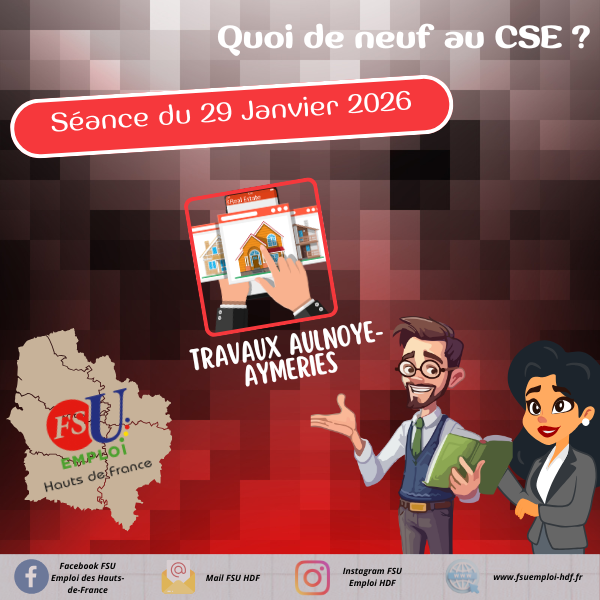 30 janvier 2026 Quoi de neuf au CSE ? Travaux Aulnoye-Aymeries – Quoi de neuf au CSE du 29 janvier 2026