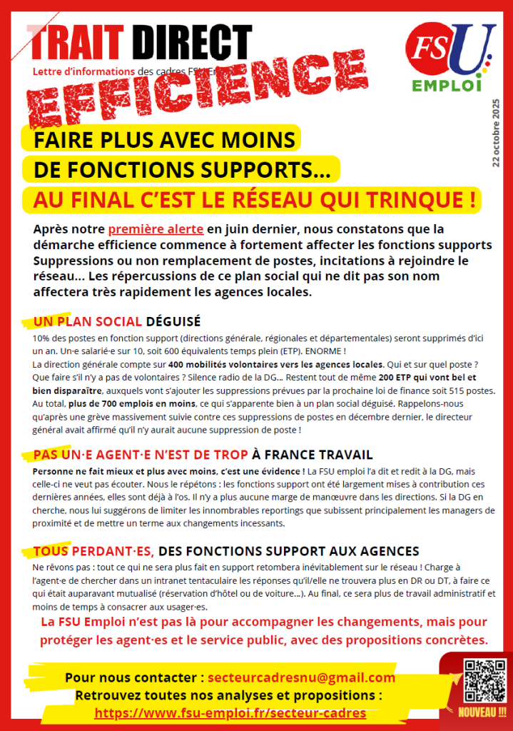 Trait Direct -lettre d’information des cadres FSU Emploi – Faire plus avec moins de fonctions supports …